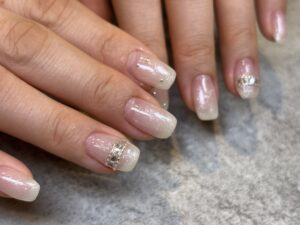 キラキラのワンポイントビジューネイル